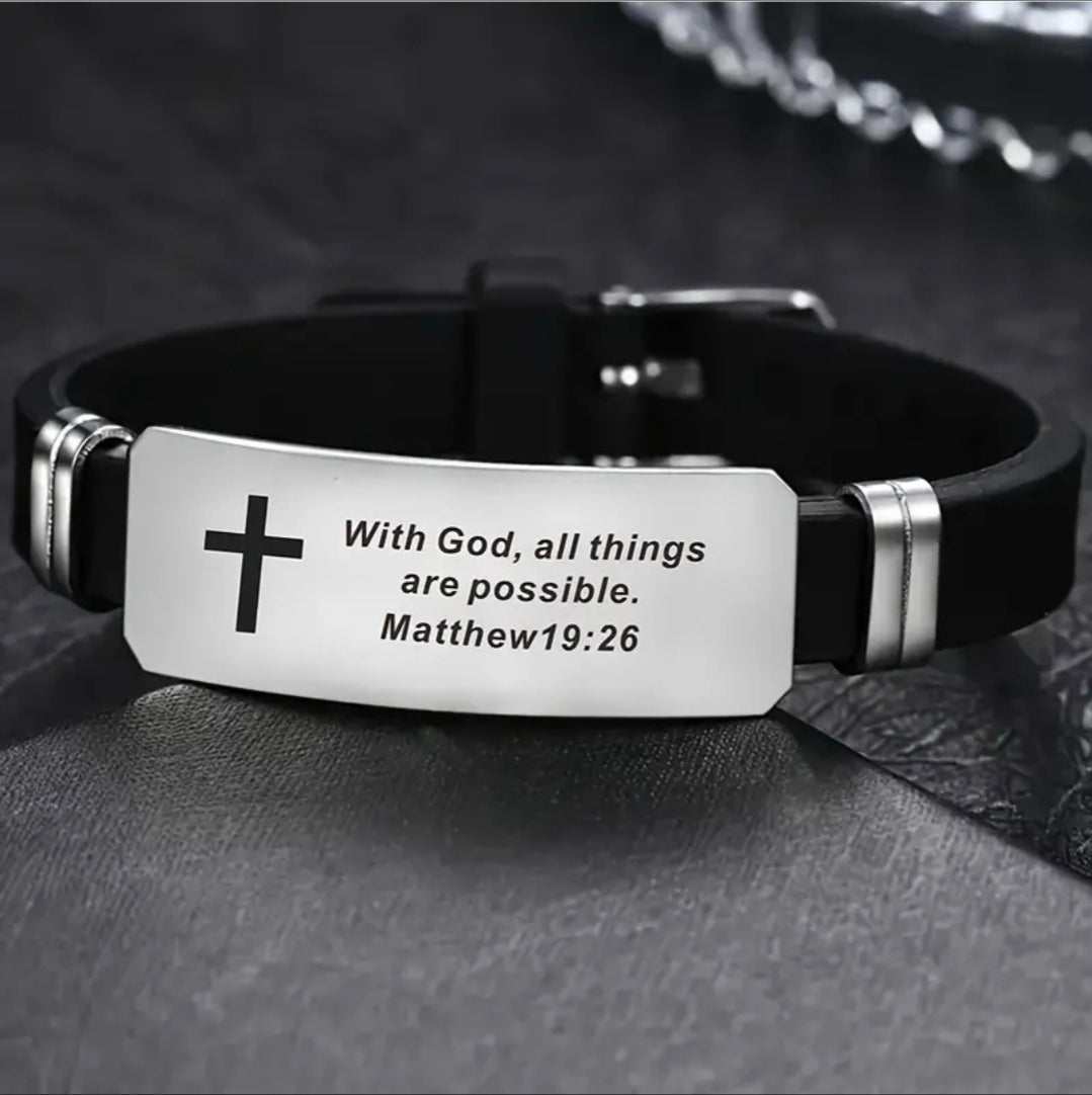 Christian Cross Bracelet UK | “With God All Things Are Possible” Matthew 19:26 – Adjustable Faith Wristband Gift for Men & Women – Rebeelaa Collection